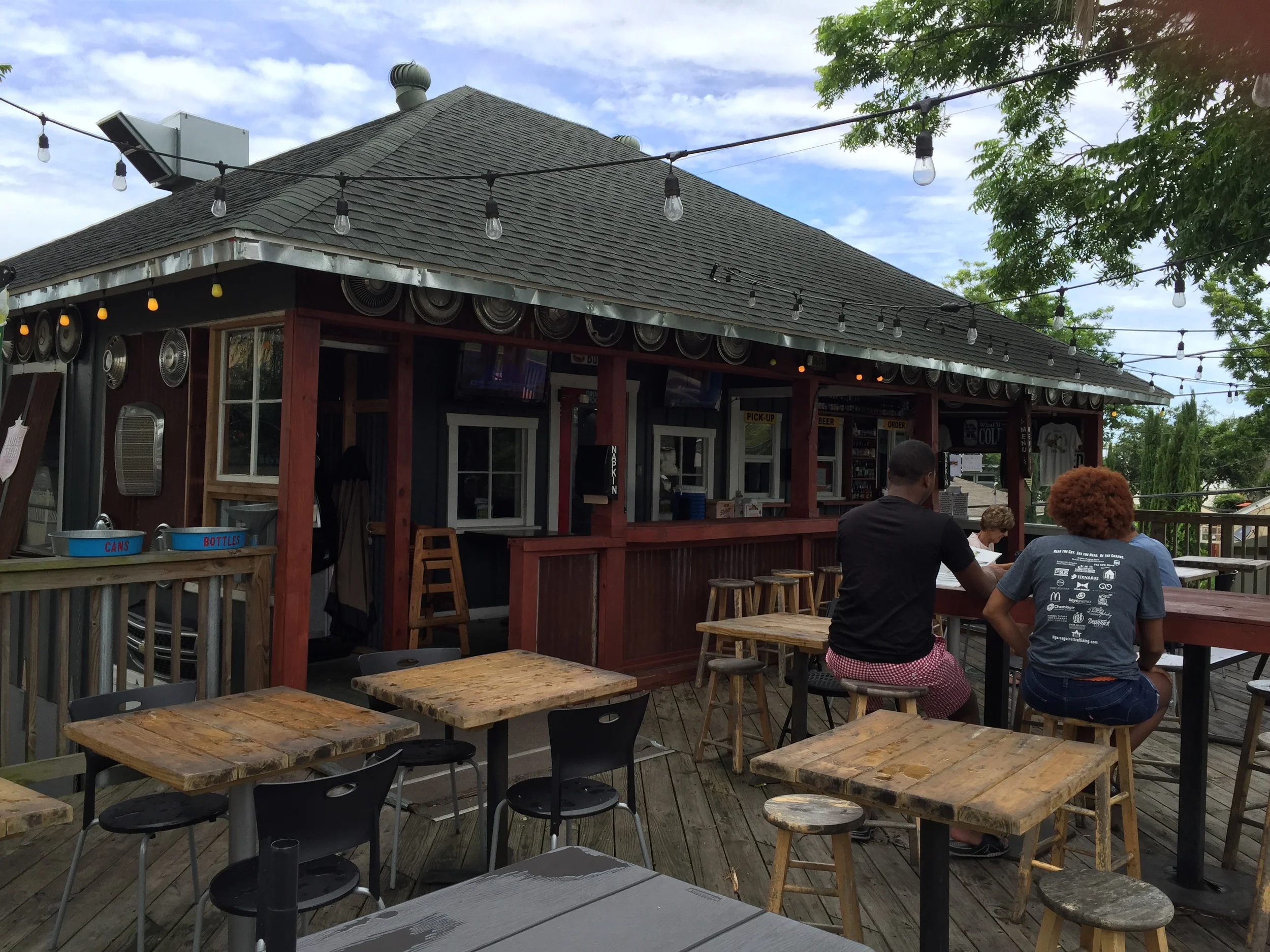 I personally have been to the Hubcap Grill in the heights before but this was my first time going to the one located in Kemah. Once you get there you have the option to sit outside or inside, we choose outside but I recommend inside as the hotter months start to approach. From the outside there is three windows, order, beer and pick up. Obviously you go to order first and order. This time Jocelyn and I both decided on the same thing and got the cheeseburger and a side of fries. For drinks, Jocelyn got a water and I got a strawberry soda. Overall the place is very well themed and the food is delicious! I certainly recommend the Hubcap Grill for all the burger lovers out there!